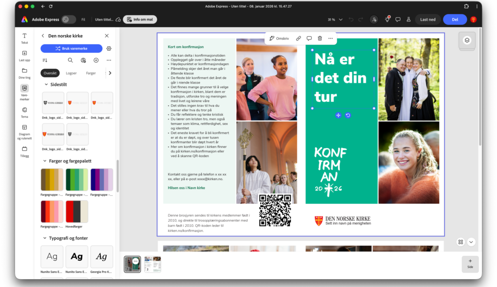 – Adobe Express er enkelt, fleksibelt og intuitivt å bruke. Her får du tilgang til plakatar, brosjyrer og anna materiell i Den norske kyrkja sin grafiske profil, som du enkelt kan redigere og tilpasse, seier kommunikasjonsdirektør Emil Engeset.